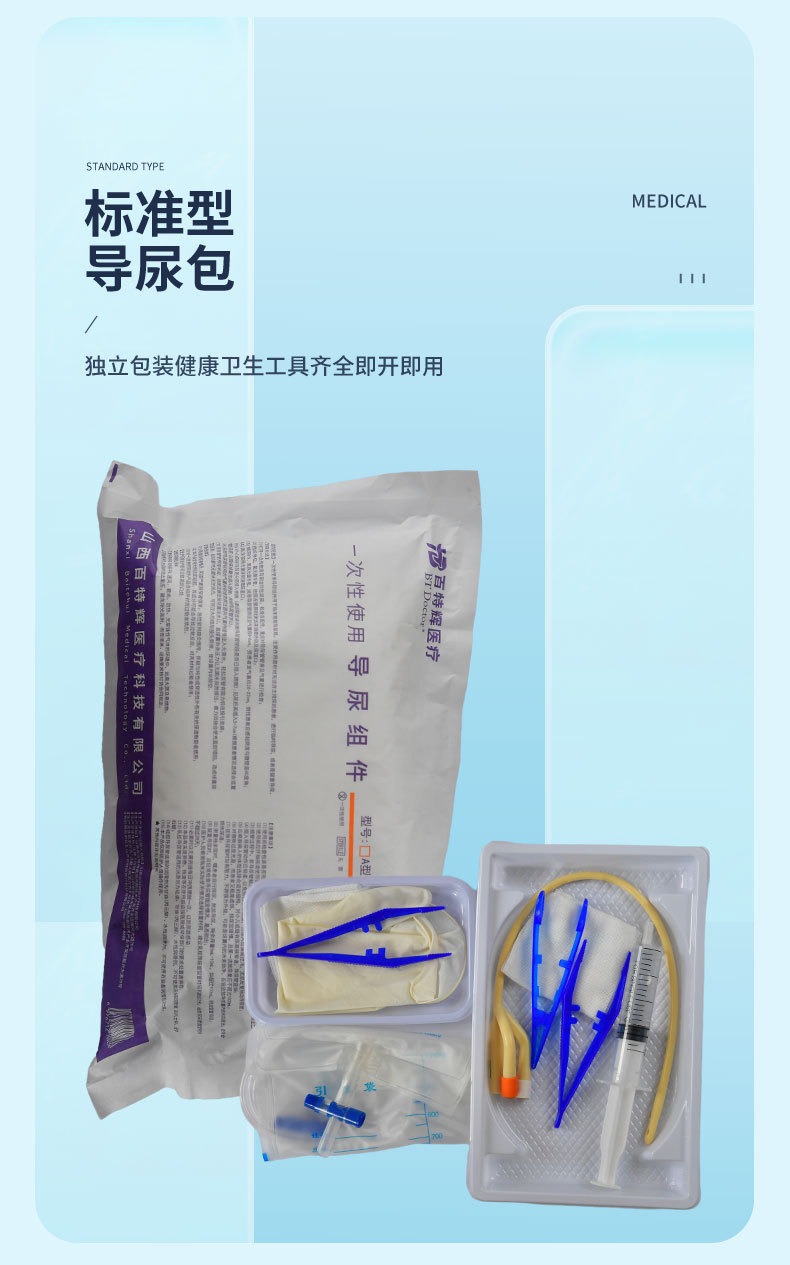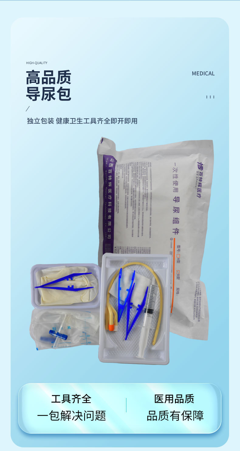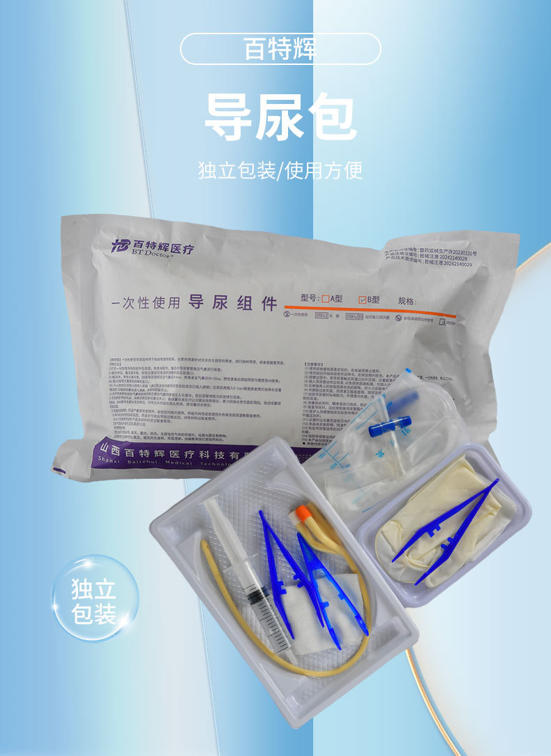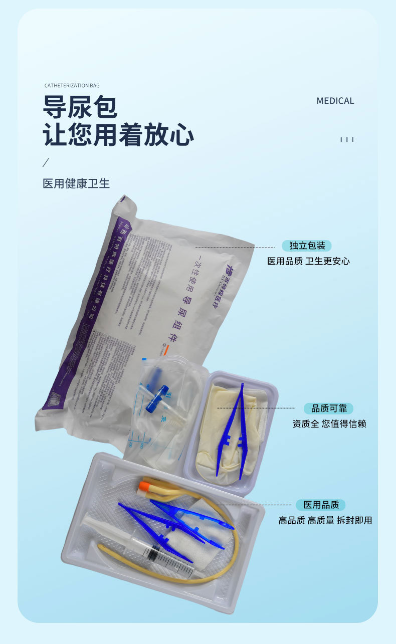 一次性醫(yī)用導(dǎo)尿組件導(dǎo)尿包導(dǎo)尿管超滑雙腔乳硅膠男女用引流尿袋